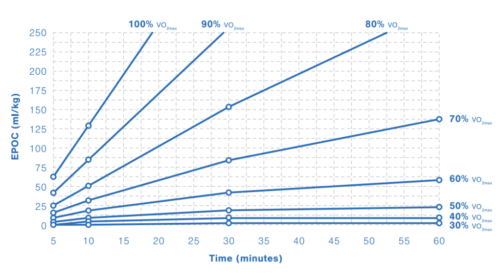 → Exercise duration: Longer exercise sessions also increase oxygen consumption and EPOC;